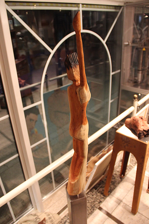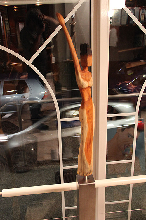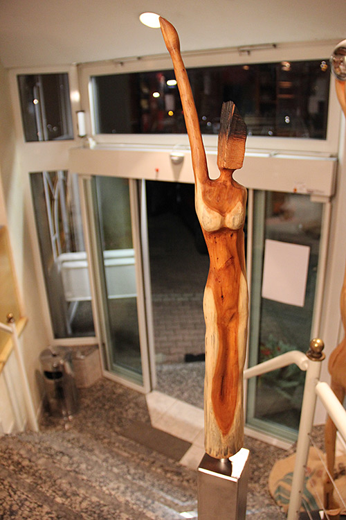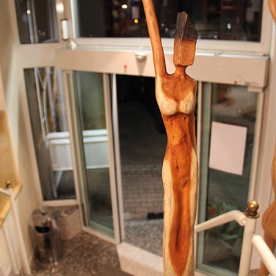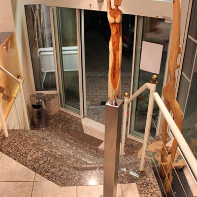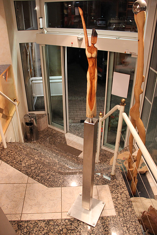 Format: 8x8x60/100cm, Material: Eibenholz geölt auf Edelstahlsockel
