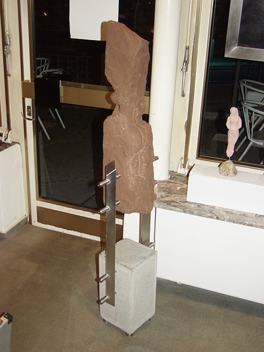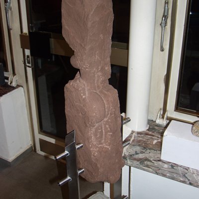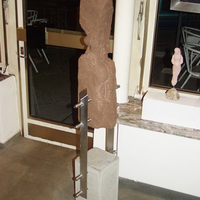 Format: 160x30x30cm, Material: Pfinztäler Sandstein Edelstahl Betonsockel