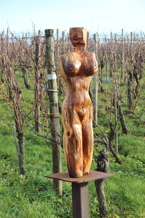 Format: 200x50x50cm, Material: gestocktes Tannenholz auf Stahlsockel