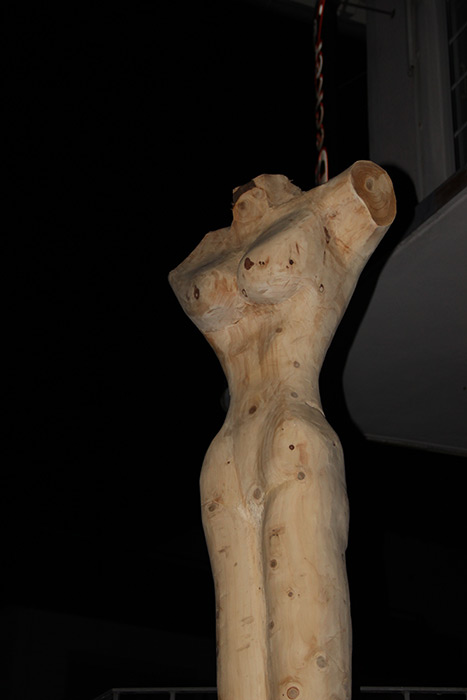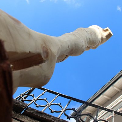 Format: 260x50x50cm, Material: Tannenholz gebeizt Stahlplatte