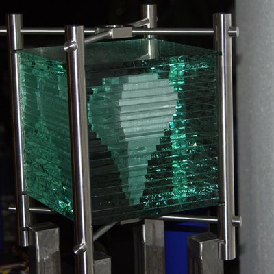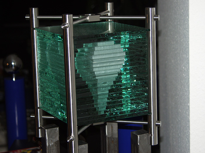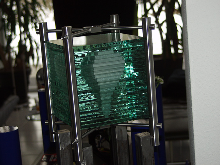 Format: 155x25x25cm, Material: Glasplatten Edelstahlgestell