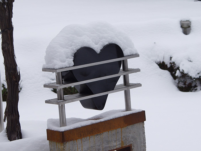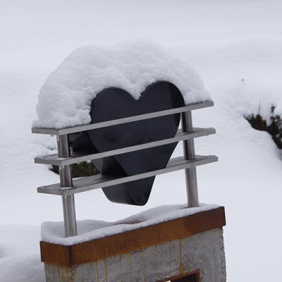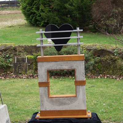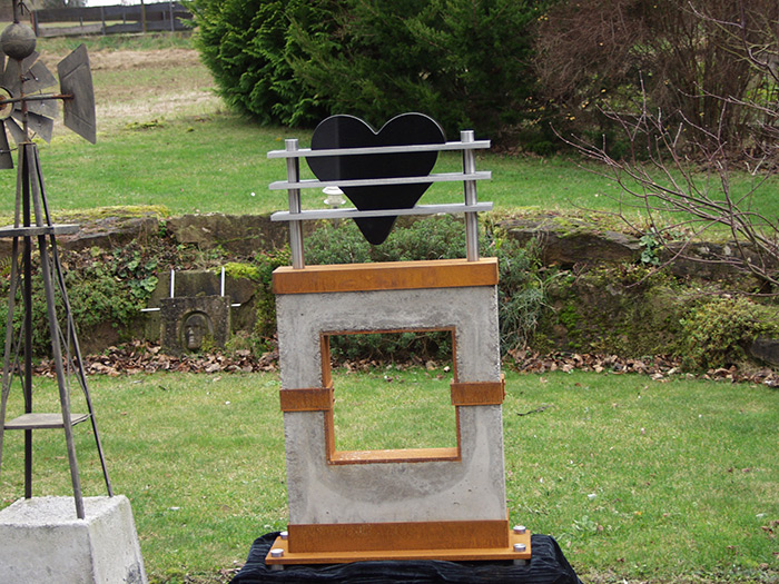 Format: 130x80x20cm, Material: schwarzes Marmorherz Edelstahl Stahl Beton