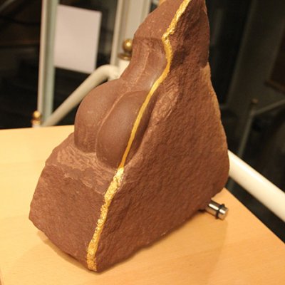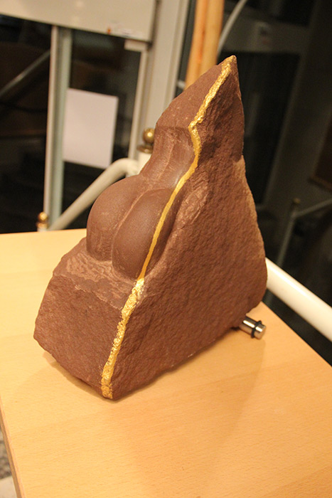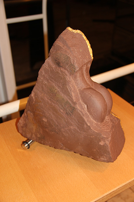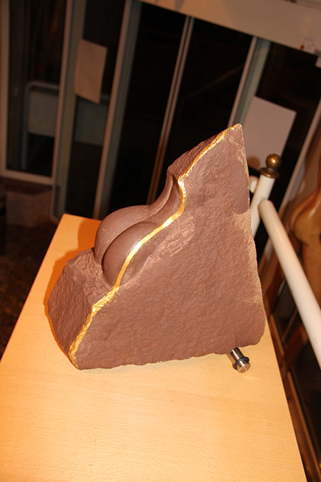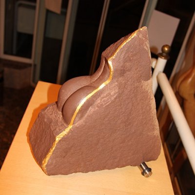 Format: 40x30x20cm, Material: Pfinztäler Sandstein mit Blattgold Edelstahl