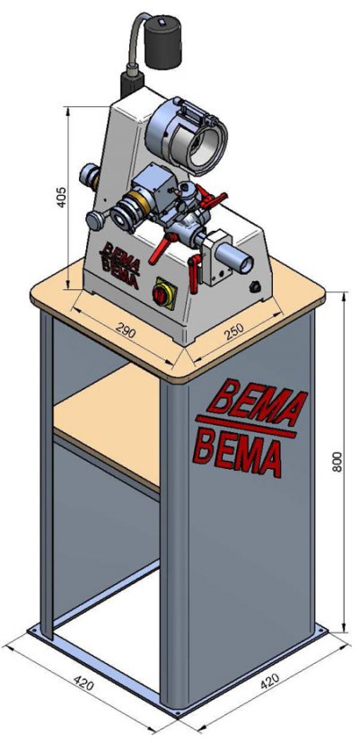 The grinding disc is powered by a two-stage motor. This is also an advantage when using diamond discs. The grinding spindle is powered by a V-belt. The same is also used in the closed machine body