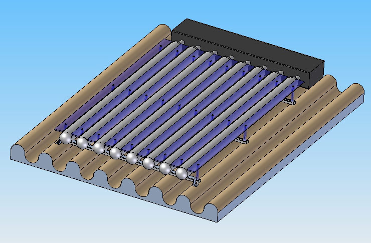 Le paragrêle breveté se compose de plusieurs surfaces de rebondissement en matière plastique transparente antichoc. Celles-ci sont fixées par des entretoises également transparentes implantées entre les tubes de l'installation solaire.
